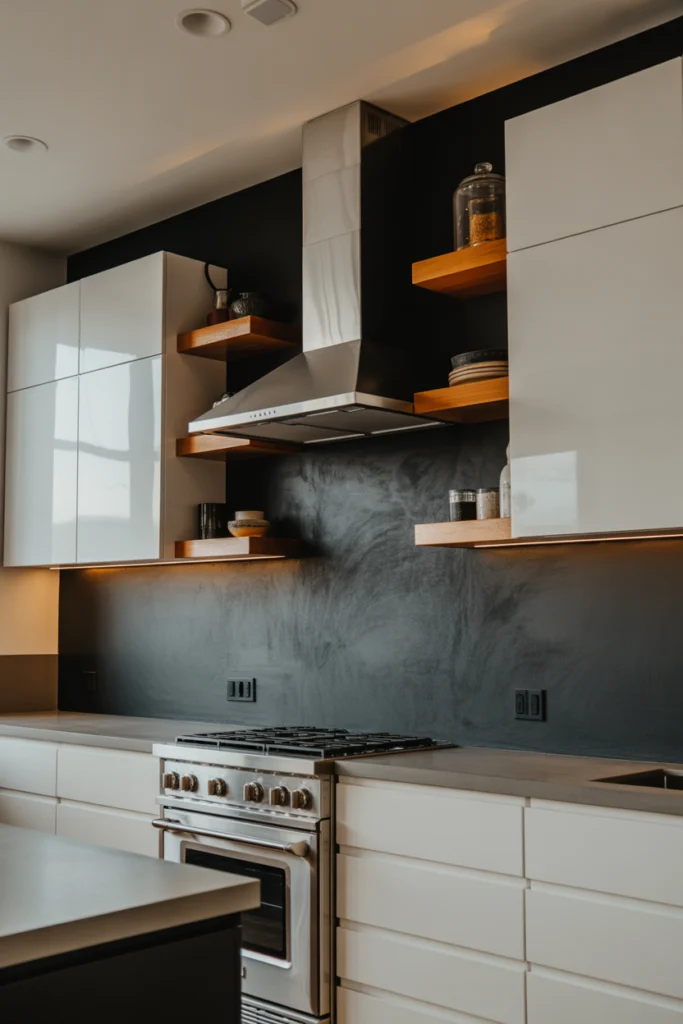 A charcoal gray accent wall adds depth and drama to any kitchen. This bold color choice brings a modern and stylish edge to the space, creating a visually striking contrast with lighter cabinetry or countertops. Charcoal gray works especially well in open-concept kitchens where it becomes a natural focal point. The key to using dark tones successfully is balancing them with plenty of natural or artificial light. Glossy finishes, metallic décor, and reflective surfaces can help keep the space from feeling heavy.