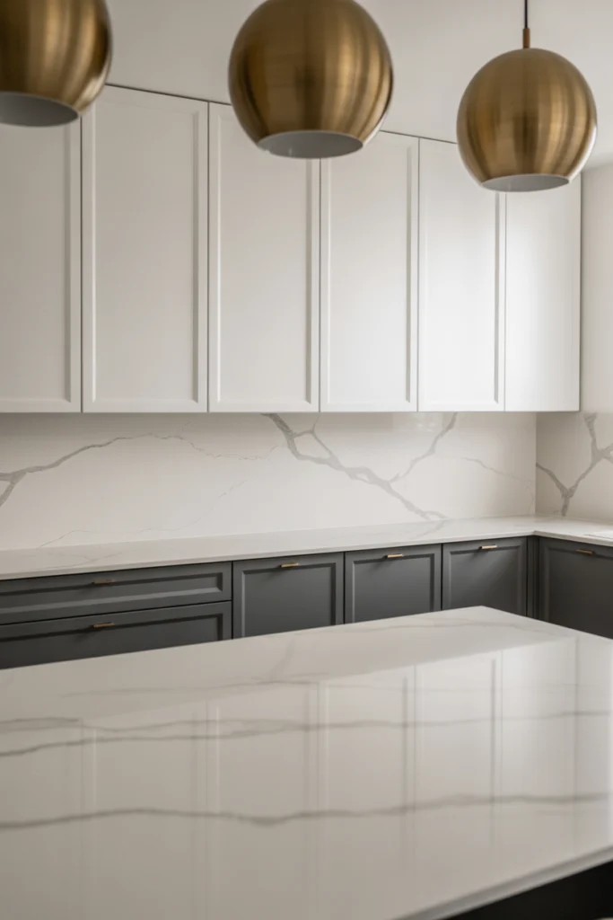 Combining gray and white cabinets creates a fresh, elegant, and timeless kitchen design. This two-tone look works beautifully by placing lighter colors on upper cabinets and darker shades on lower units. The blend creates visual interest and helps define the kitchen while maintaining an open, spacious atmosphere. The contrast between gray and white adds dimension without appearing too busy, making it ideal for smaller or narrow kitchens.