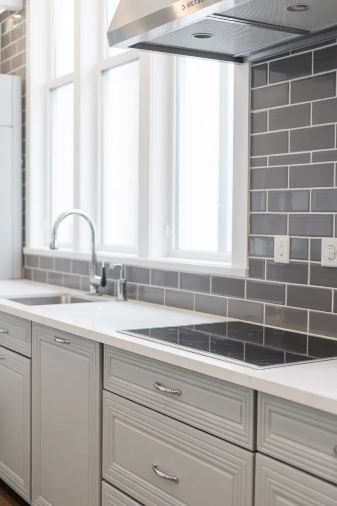 A gray subway tile backsplash adds subtle texture and sophistication to any kitchen. While classic white tiles are popular, gray tiles bring a more modern and stylish twist. They complement both light and dark cabinetry, helping tie the entire color palette together. Gray subway tiles come in various shades, from soft dove gray to deep slate, allowing you to customize the look to match your overall design theme.