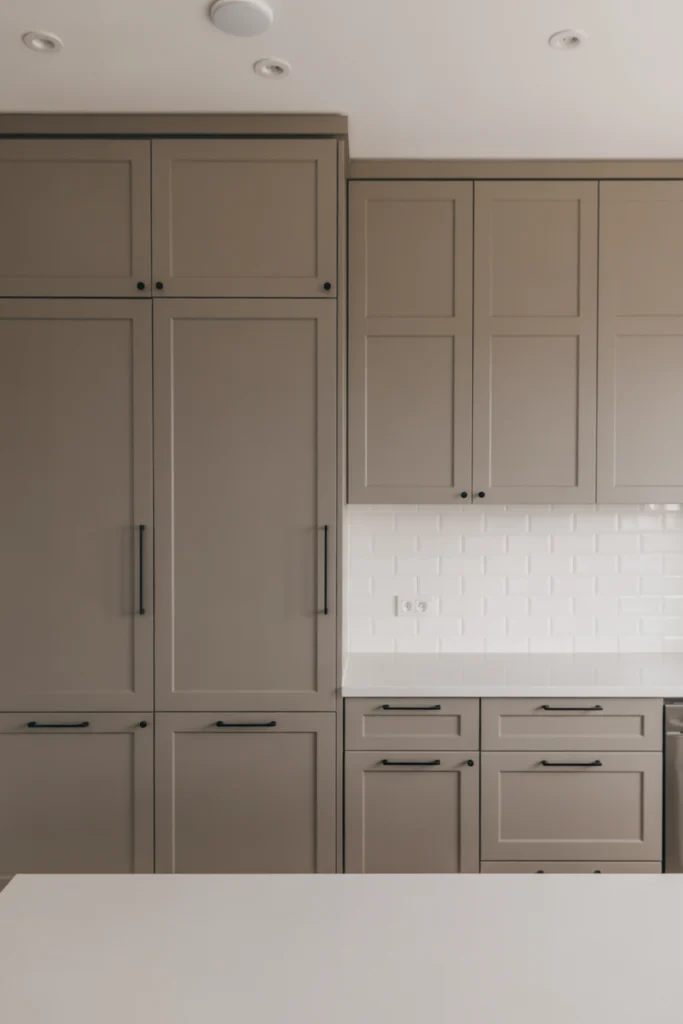 Greige, a blend of gray and beige, brings warmth and modernity together in perfect harmony. Greige cabinets provide a soft, inviting feel while maintaining a sleek and minimalist aesthetic. This color works well for homeowners who want a kitchen that feels contemporary without being overly cool or industrial. Greige blends beautifully with natural wood elements, stone textures, and matte black or gold hardware.