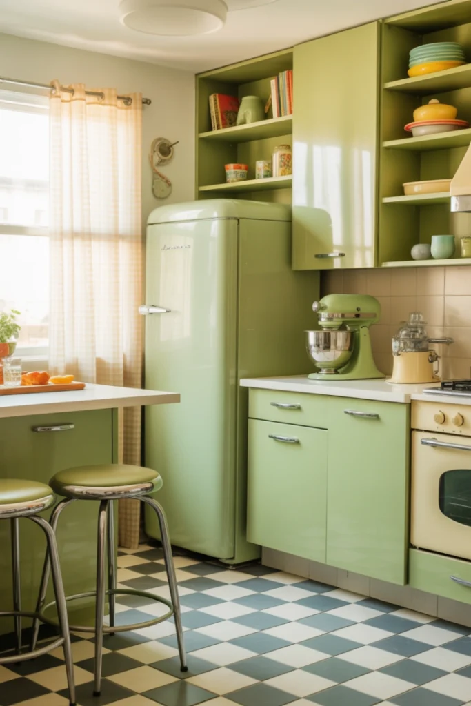 20. Retro-Inspired Green Kitchen