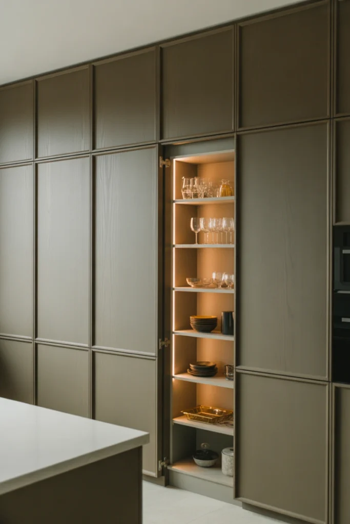 20. Hidden Pantry Behind Full-Height Cabinetry