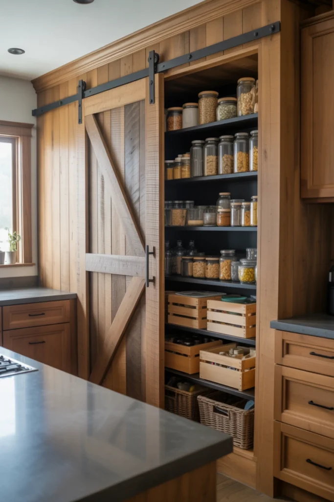 12. Hidden Pantry Behind a Barn Door