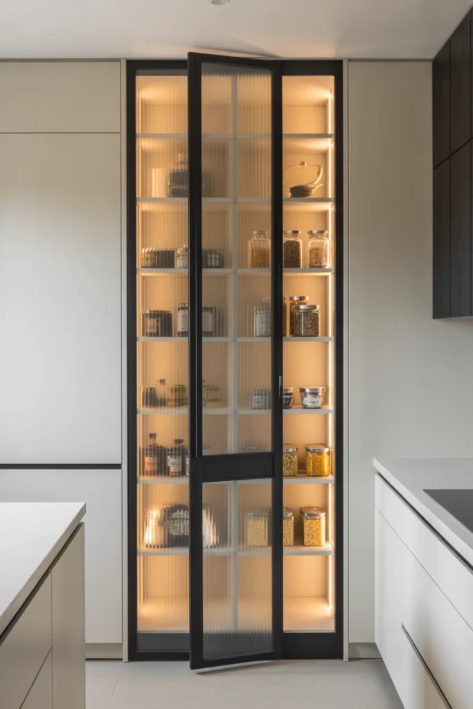 16. Hidden Pantry Behind a Glass Panel Door