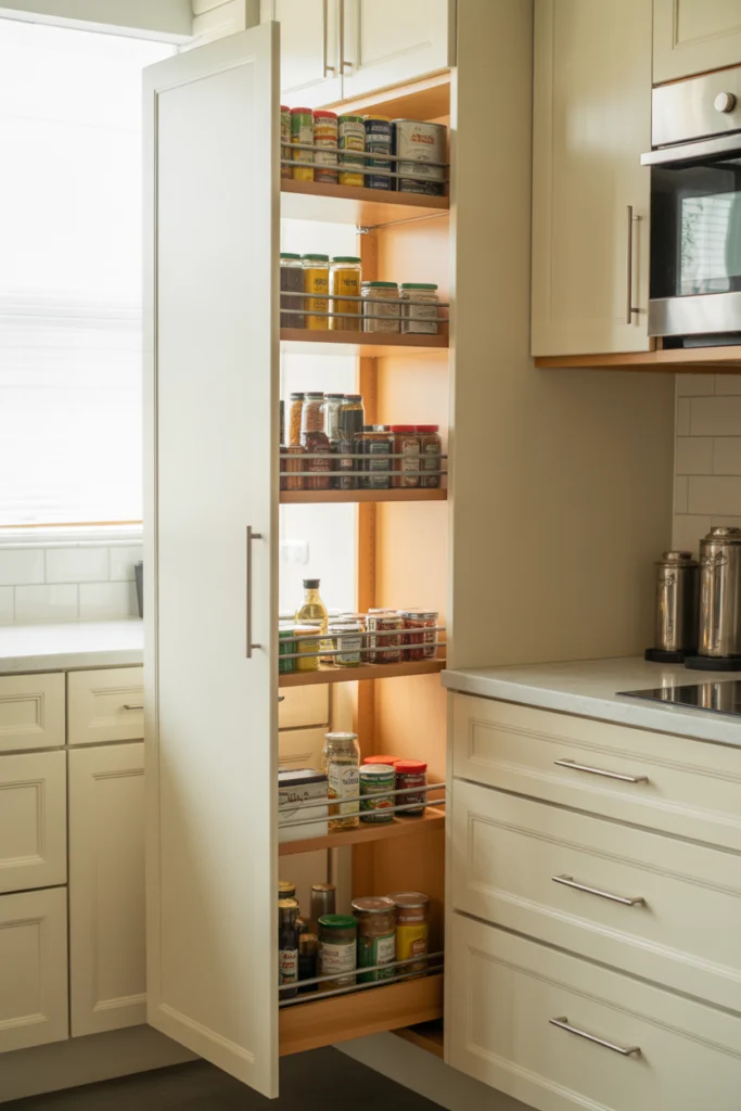 8. Pantry Hidden Inside a Tall Pull-Out Cabinet