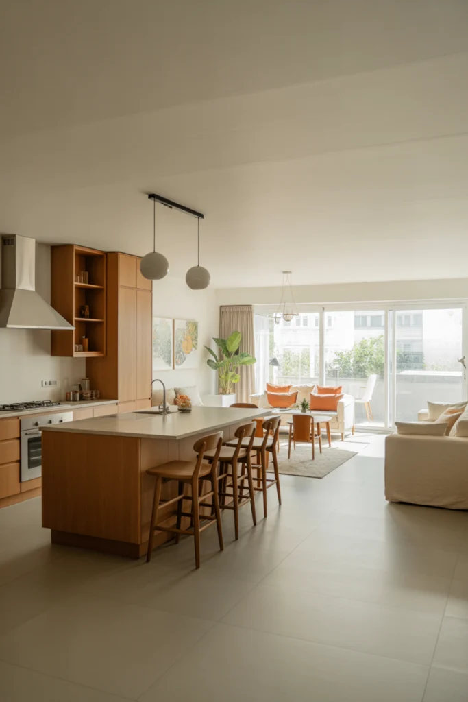 Open-concept designs make the home feel larger and more connected. Light colors, cohesive flooring, and consistent décor tie the spaces together. These House Kitchen Ideas work especially well in contemporary and smaller homes, maximizing both space and functionality.