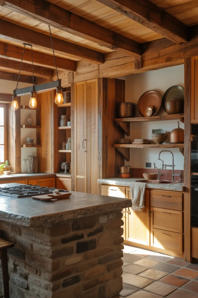 16. Rustic Kitchen with Natural Wood Elements
