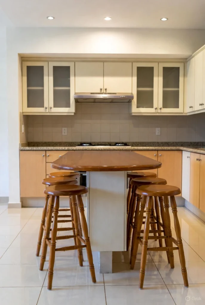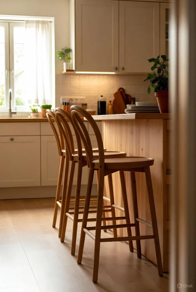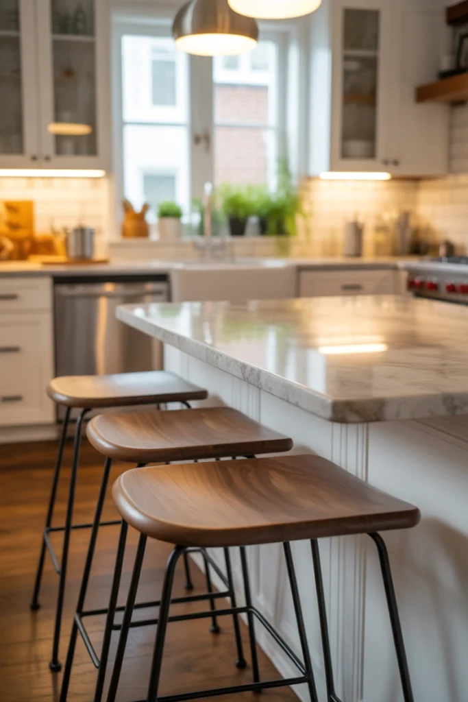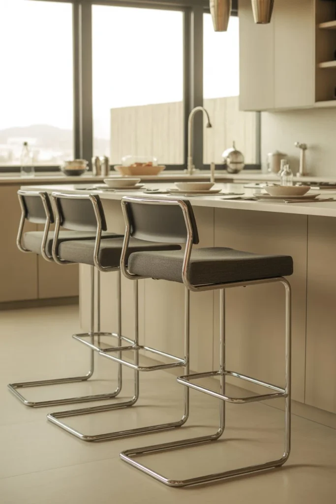 Cushioned seats enhance comfort without adding visual bulk. This kitchen stool idea is perfect for those who want softness while maintaining a clean design.