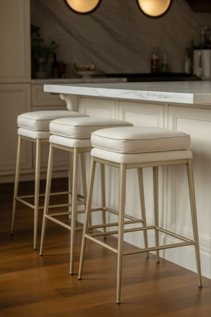 Cushioned stools are ideal for longer seating periods. The padding provides support while remaining easy to maintain. This design works well in both modern and transitional kitchens.