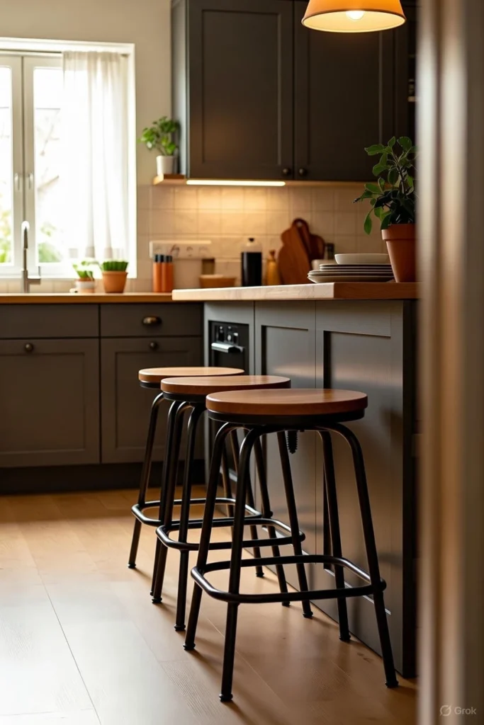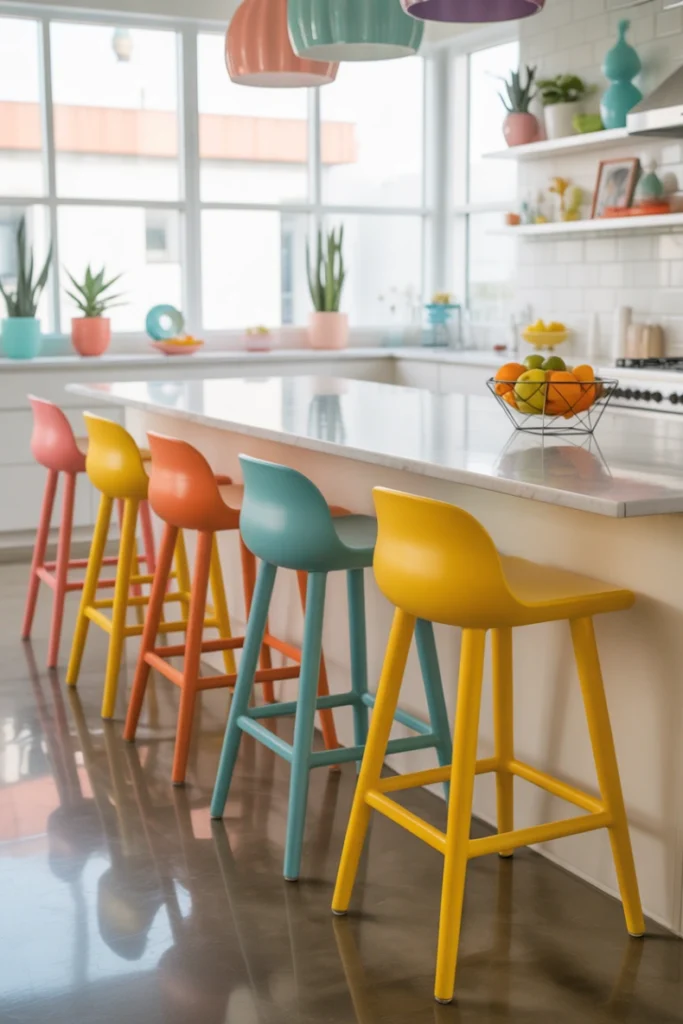 Bright or bold stools can transform a neutral kitchen into a lively space. They are an excellent way to experiment with color without committing to permanent changes.