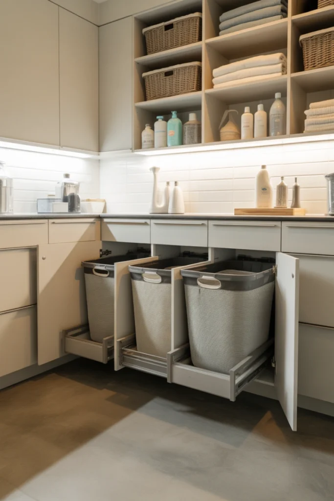 6. Pull-Out Hampers for Organized Sorting