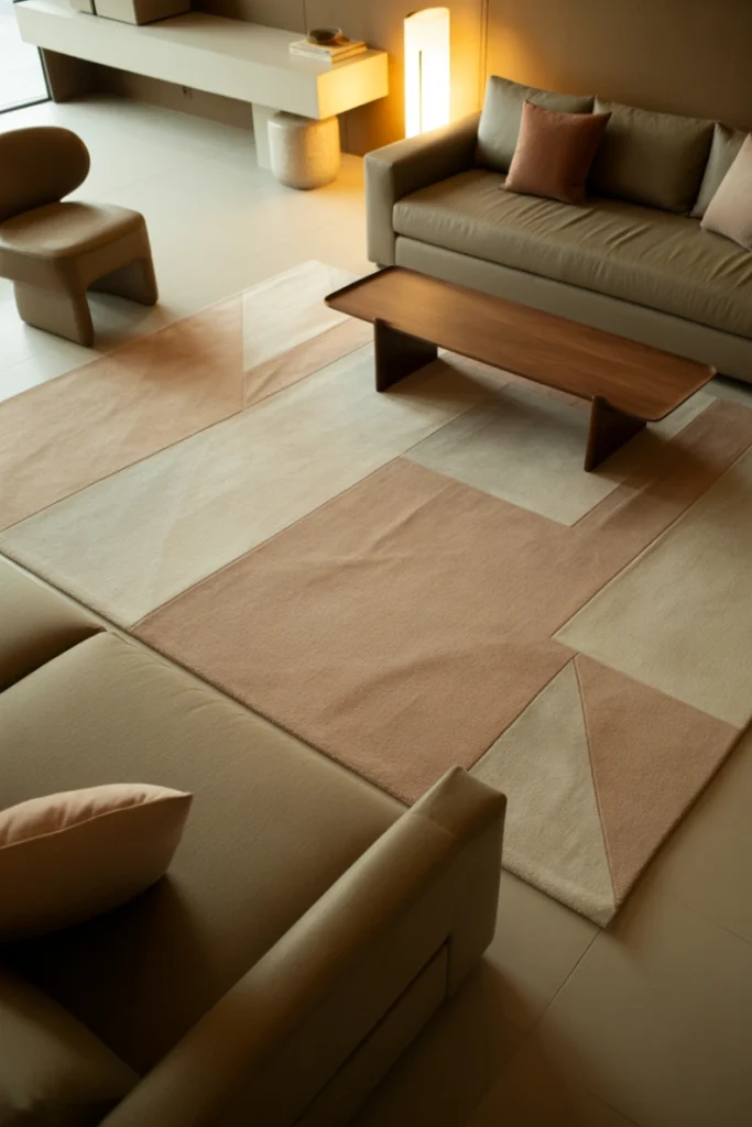 Area rugs help define zones in open layouts and add warmth to modern interiors. Choose rugs that complement your color scheme—whether solid, patterned, or textured. Oversized rugs create visual unity and make the living room feel more cohesive.