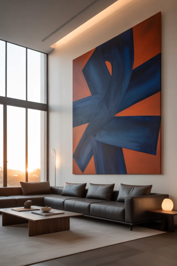 Large art pieces bring personality, depth, and sophistication to living rooms. Whether abstract, modern, minimalist, or textured, statement art becomes the focal point of your design. Choose artwork that complements your furniture and color palette.