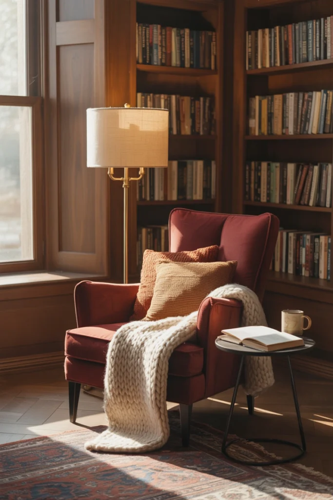 A dedicated reading corner adds charm and function to your living room. Choose a comfortable armchair, a small side table, and a floor lamp to create a private, relaxing nook. Place this setup near a window for natural light or in a quiet corner to maximize coziness.