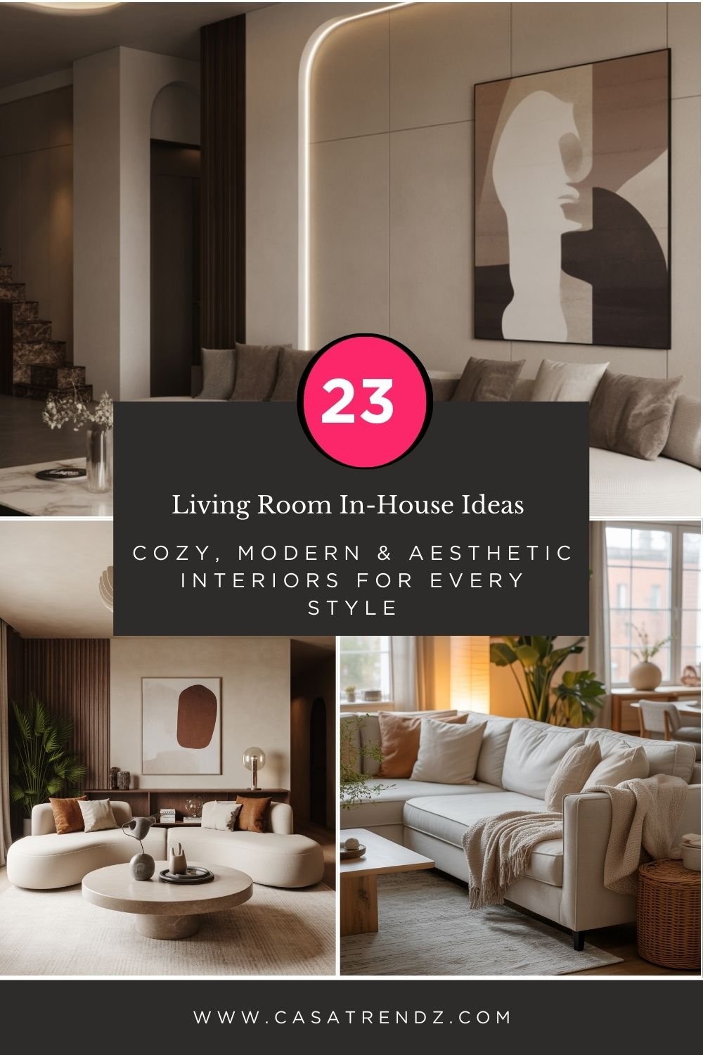 These 23 living room in-house ideas offer inspiration for creating interiors that are cozy, modern, aesthetic, and completely personalized to your style. Whether you prefer minimalism, warmth, luxury, or creativity, each concept provides direction for building a home that feels inviting, functional, and beautifully designed. From accent walls and layered lighting to stylish furniture and natural materials, every idea helps you shape a living room that enhances comfort and elevates visual appeal.