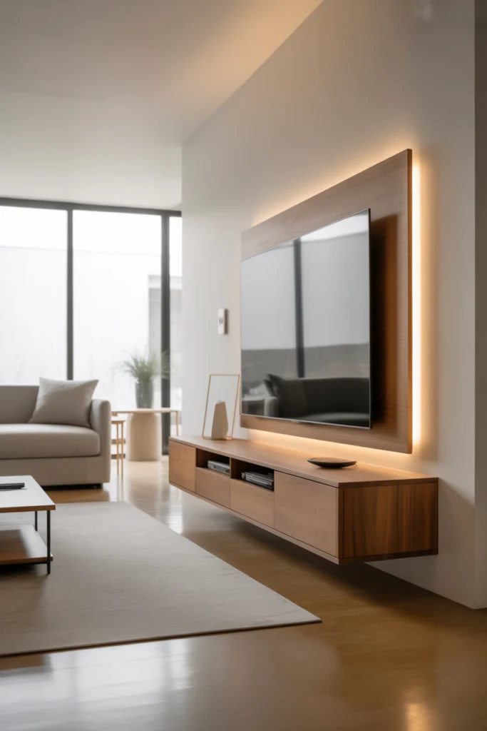 Pair your floating unit with hidden wiring, integrated shelving, or LED backlighting for a polished result. This approach creates a sleek media wall that serves as a visual centerpiece. Floating TV units are perfect for homeowners aiming for a contemporary and clutter-free design.