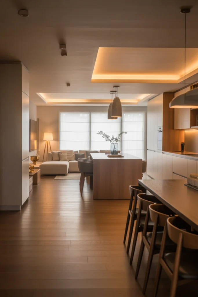 Choose fixtures in matte black, brushed gold, or natural wood to match your interior style. Proper lighting transforms your living room into a cozy and functional space suitable for any mood.