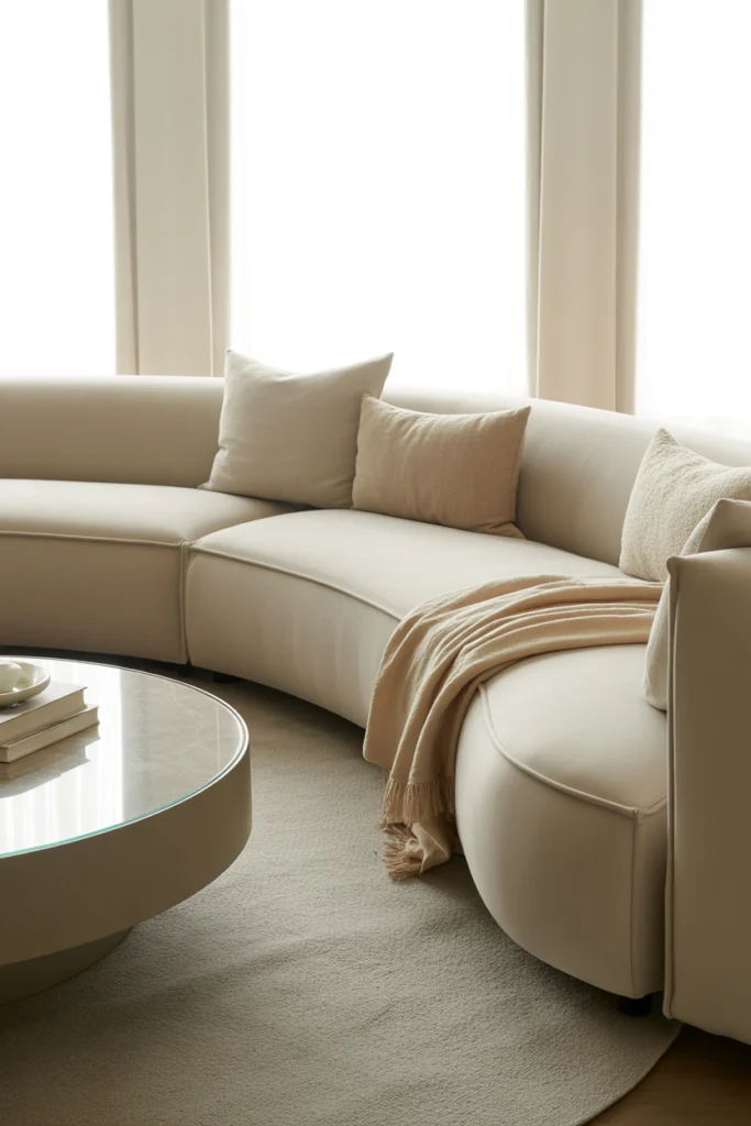 Curved furniture is a major trend in 2026 design. Rounded sofas, oval coffee tables, arched cabinets, and circular rugs soften the overall look of your living room. These fluid shapes create movement and elegance while offering comfort and visual interest. Curved furniture suits modern, minimalist, and contemporary interiors beautifully.