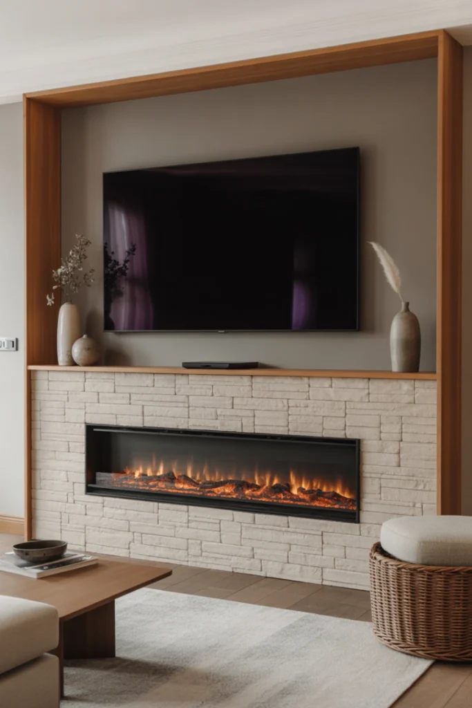 From a functional standpoint, TV and fireplace living room TV wall ideas maximize vertical space and reduce the need for multiple focal points. Using complementary materials such as stone, tile, or wood helps unify the design. This setup works well in both modern and classic interiors.