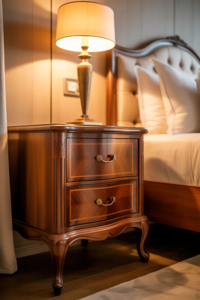 Vintage-inspired nightstands add charm and character to bedrooms. Traditional detailing and classic silhouettes define this timeless nightstand idea for 2026.