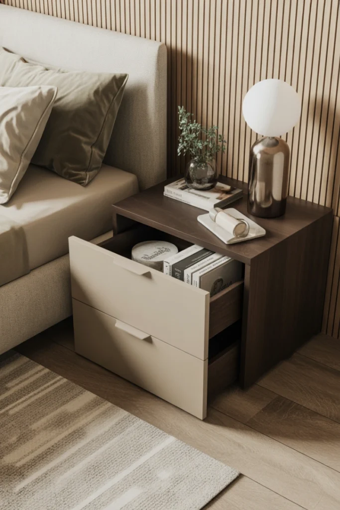 This nightstand idea for 2026 supports minimalist and modern aesthetics while maintaining everyday functionality.
