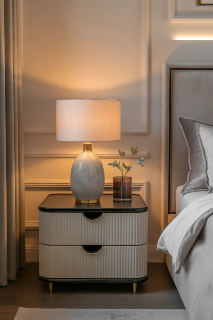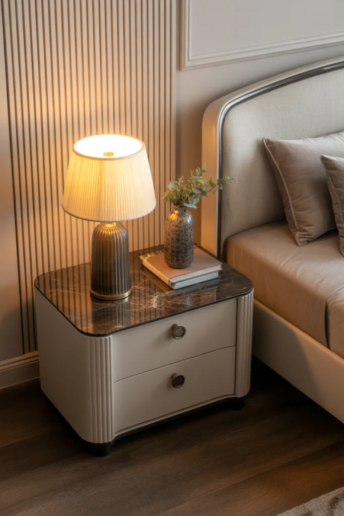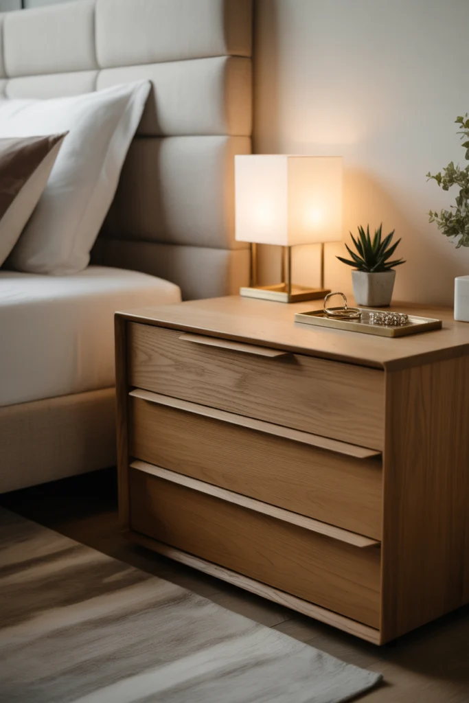In nightstand ideas for 2026, metal accents are often paired with wood or matte finishes, creating a balanced and contemporary aesthetic.