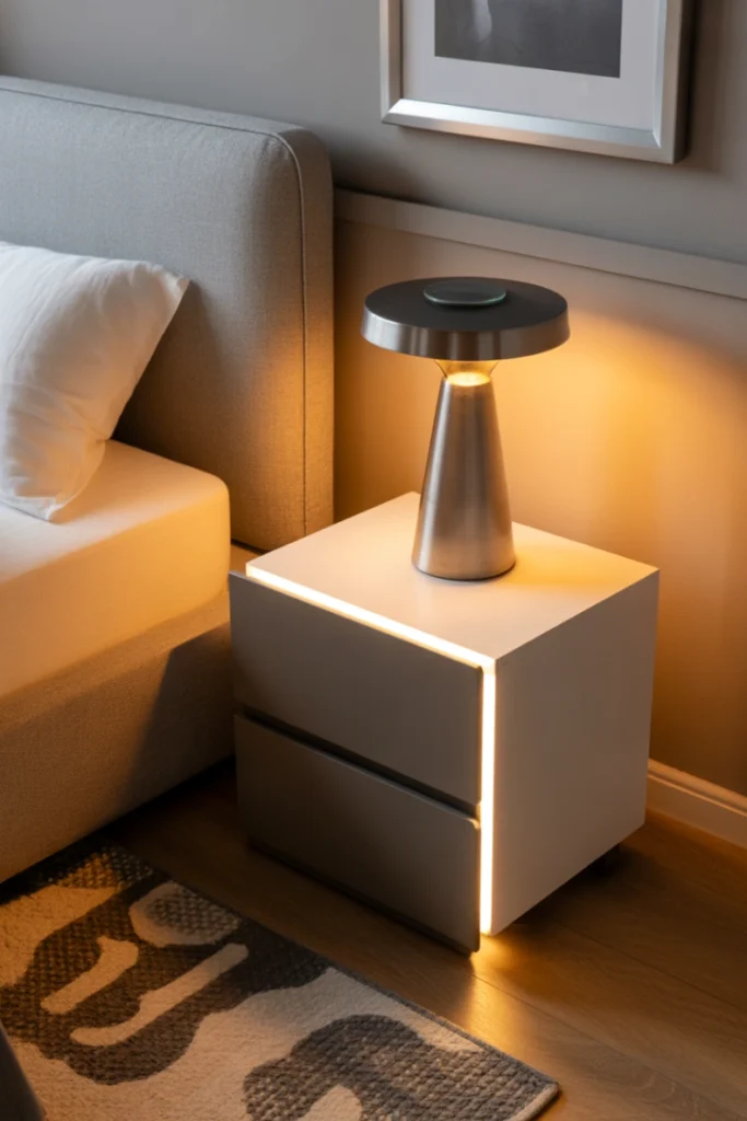 Nightstands with built-in lighting are practical and stylish nightstand ideas for 2026. Integrated LED strips or lamps reduce the need for additional bedside lighting while improving convenience.