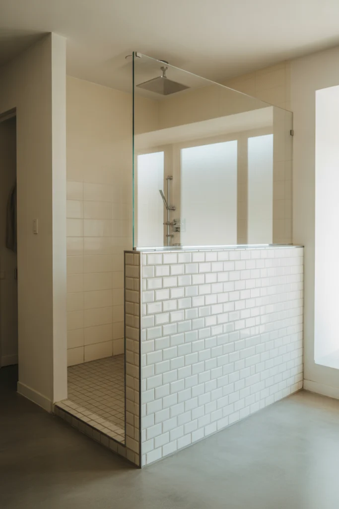 Half walls also create opportunities for tile accents or built-in storage. Among no door shower ideas, half wall designs offer a balance between structure and visual freedom.