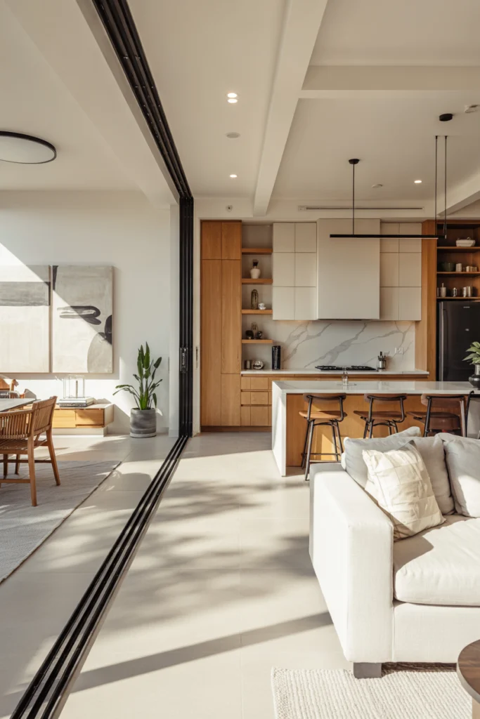Functionally, this design improves airflow and expands usable space. It creates a seamless transition between interior and exterior living.