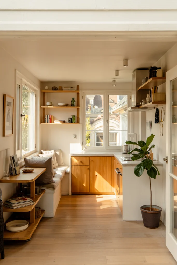 Functionally, small open plans rely on smart furniture choices and storage solutions. Multi-purpose furniture and consistent finishes help maintain flow. This design approach enhances comfort without sacrificing practicality.