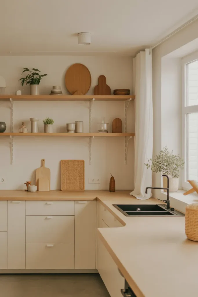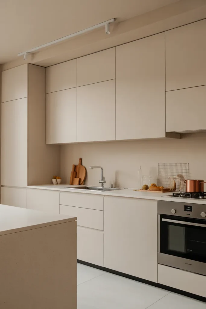 Even in a small space, a minimalist design helps the kitchen feel larger and more functional. When everything is thoughtfully placed and visually balanced, the entire area becomes more comfortable and welcoming. You can introduce subtle accents through lighting, countertop finishes, or natural textures.
