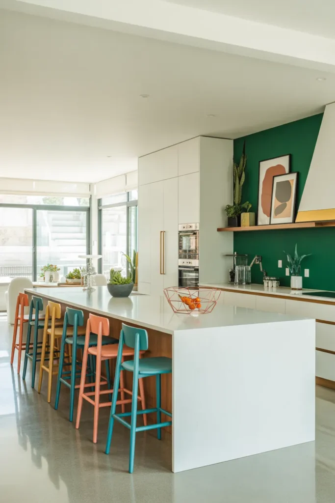Colorful accents work especially well in open layouts since they tie the kitchen and living area together. Choose colors that complement your interior style, whether bold or soft. This approach adds freshness and personality to your home.