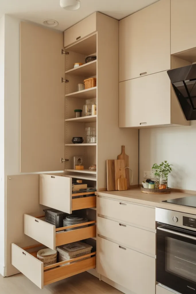 This design is especially valuable in small or modern homes where clutter-free appearances matter. With hidden appliances, the kitchen becomes visually lighter and less busy. Pair this design with neutral colors and understated hardware for a polished and cohesive look.