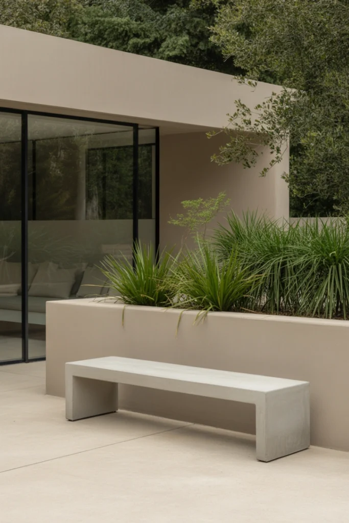 For those who appreciate clean lines and simplicity, a modern minimalist bench is a standout choice among outdoor bench ideas. Typically made from materials like metal, concrete, or sleek wood, these benches focus on form and function. Their understated design allows other elements of the outdoor space—such as plants or architectural features—to take center stage.