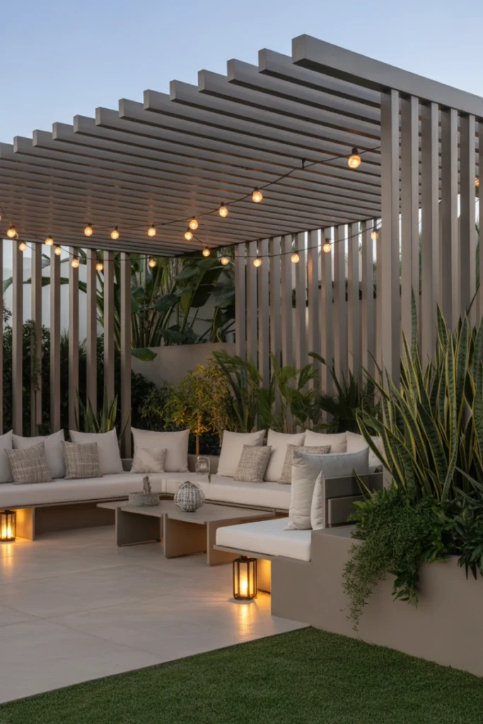 4. Pergola-Covered Lounge Area