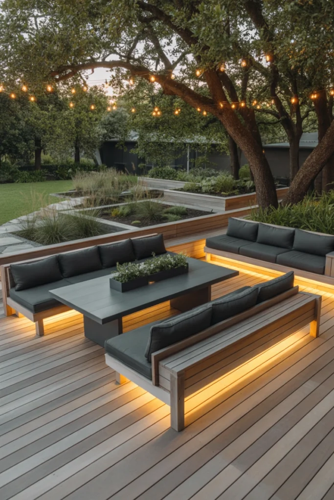 With the addition of railings, built-in seating, and lighting, decks can be both safe and stylish. Deck-based outdoor entertaining area ideas are particularly popular because they integrate seamlessly with indoor living spaces, making transitions smooth and functional.