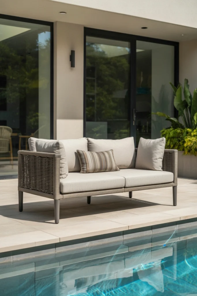13. Outdoor Loveseat for Poolside Lounging