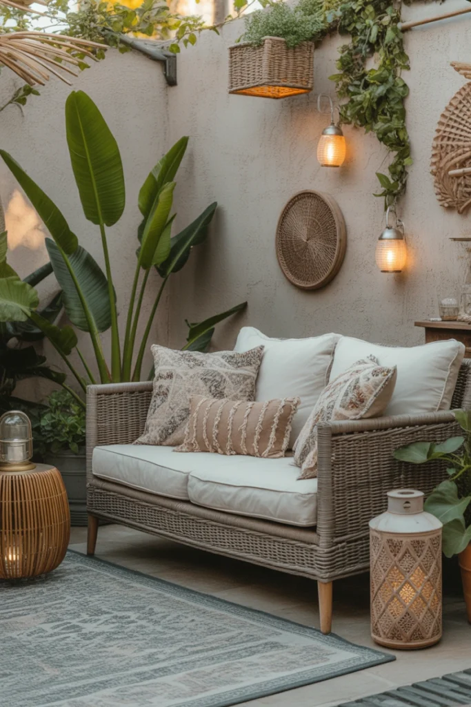 A boho loveseat creates an inviting and artistic outdoor space. Add rugs, lanterns, and plants to complete the look. This style is perfect for homeowners who enjoy expressive design and cozy outdoor lounging.