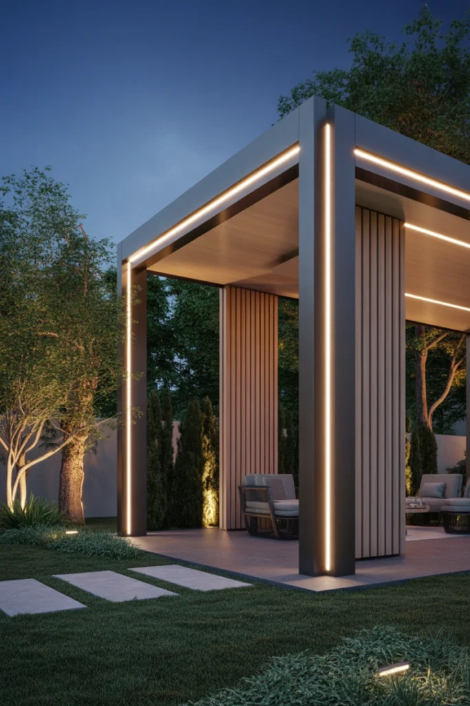 Lighting transforms an outdoor pavilion from a daytime structure into an evening retreat. Integrated lighting solutions such as recessed lights, string lights, or chandeliers enhance both functionality and atmosphere.