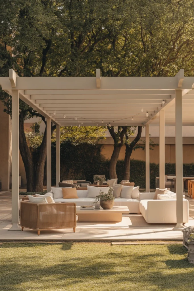 A minimalist pavilion creates a refined outdoor space without unnecessary ornamentation. Neutral color palettes and open layouts help the structure feel light and unobtrusive. This design approach works especially well for outdoor lounges or dining areas, where simplicity enhances comfort and usability. Modern pavilion designs offer a sleek solution for stylish outdoor living.