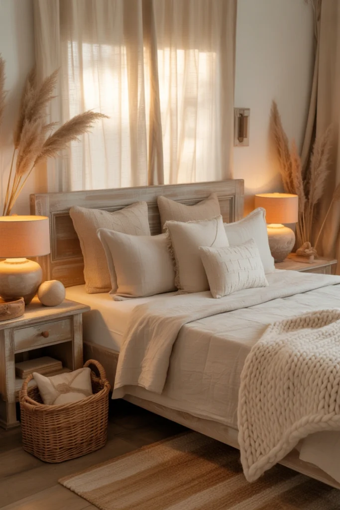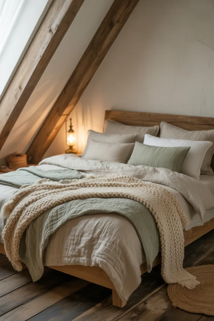 Layered bedding is essential for creating a cozy rustic bedroom. Combining quilts, throws, blankets, and cushions adds comfort, texture, and depth. Choose natural fabrics such as cotton, linen, or wool to enhance the rustic feel. Layering not only improves visual appeal but also makes the bed more inviting.