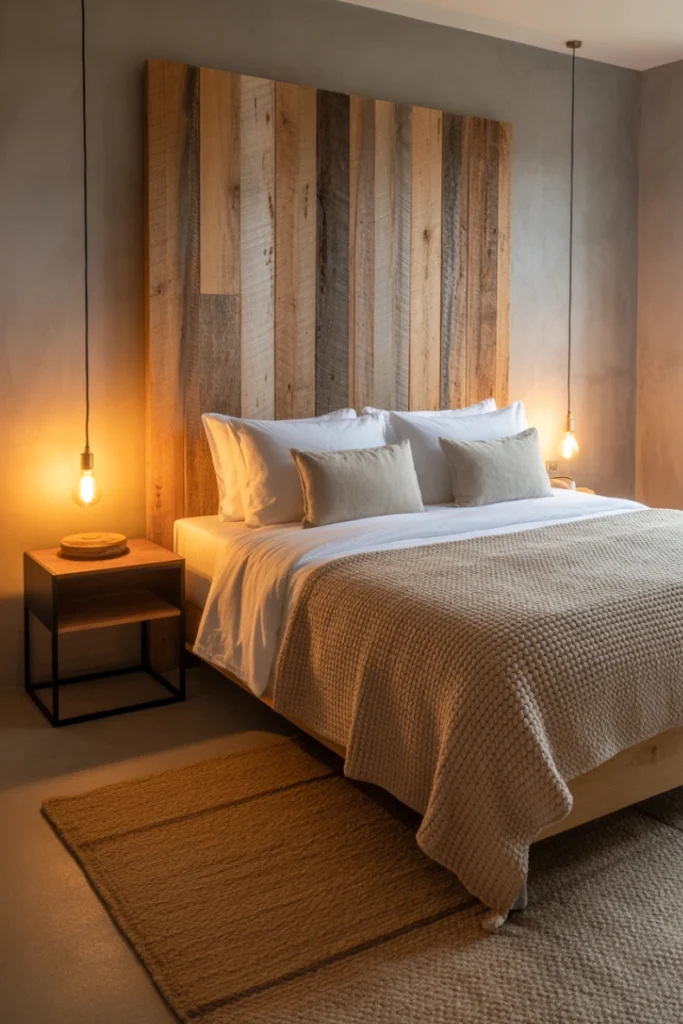 A reclaimed wood wall adds instant rustic charm to any bedroom. Using salvaged wood planks introduces texture, warmth, and a sense of history into the space. Each piece of wood carries its own unique character, giving your bedroom depth and personality. This rustic bedroom idea works beautifully behind the headboard, serving as a striking focal point.