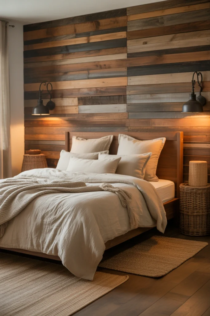 To complement a reclaimed wood wall, pair it with simple bedding and neutral tones. Soft linens, woven rugs, and iron sconces help enhance the rustic aesthetic without overwhelming the room. The natural imperfections of reclaimed wood offer a one-of-a-kind look that instantly transforms your bedroom into a cozy, inviting retreat.