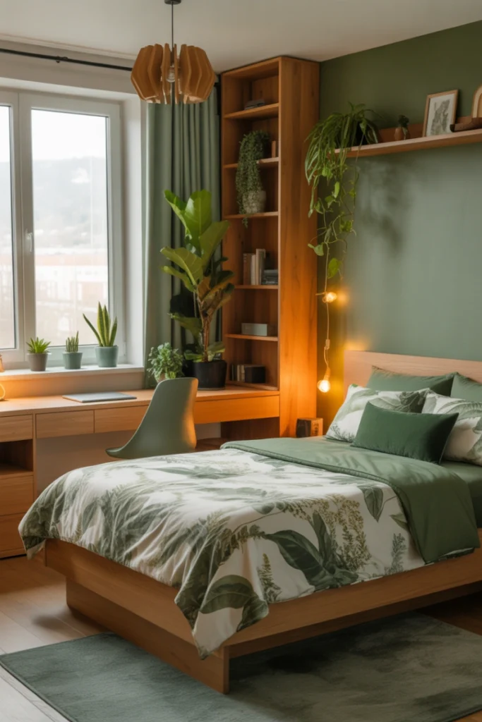 Nature-inspired bedrooms bring the outdoors inside through calming colors and organic materials. Greens, browns, and natural textures create a peaceful retreat. This design stands out among Teen Boys Bedroom Ideas for its calming effect.