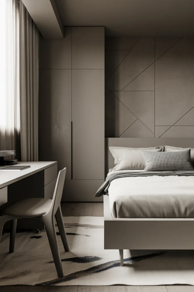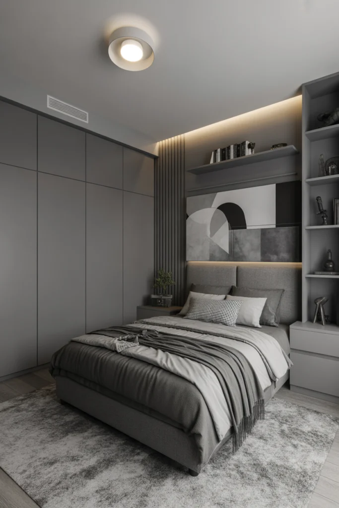 Monochrome gray bedrooms offer sophistication and simplicity. Layered shades of gray create depth without overwhelming the space. These Teen Boys Bedroom Ideas are ideal for modern tastes.