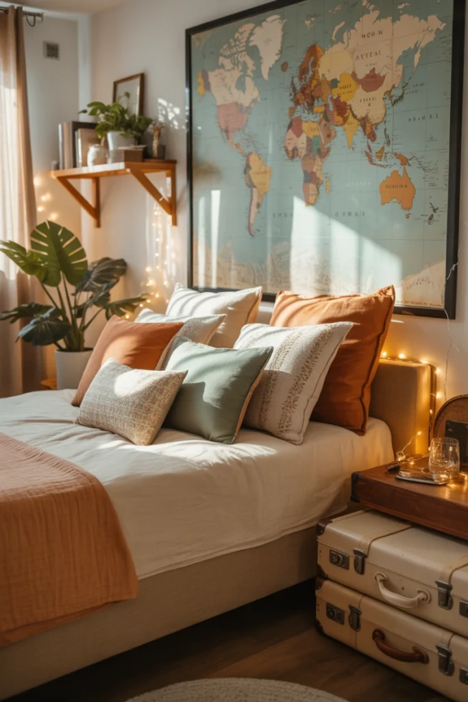 Travel-themed bedrooms inspire curiosity and adventure. Maps, photos, and souvenirs add personality and meaning. This idea encourages exploration.