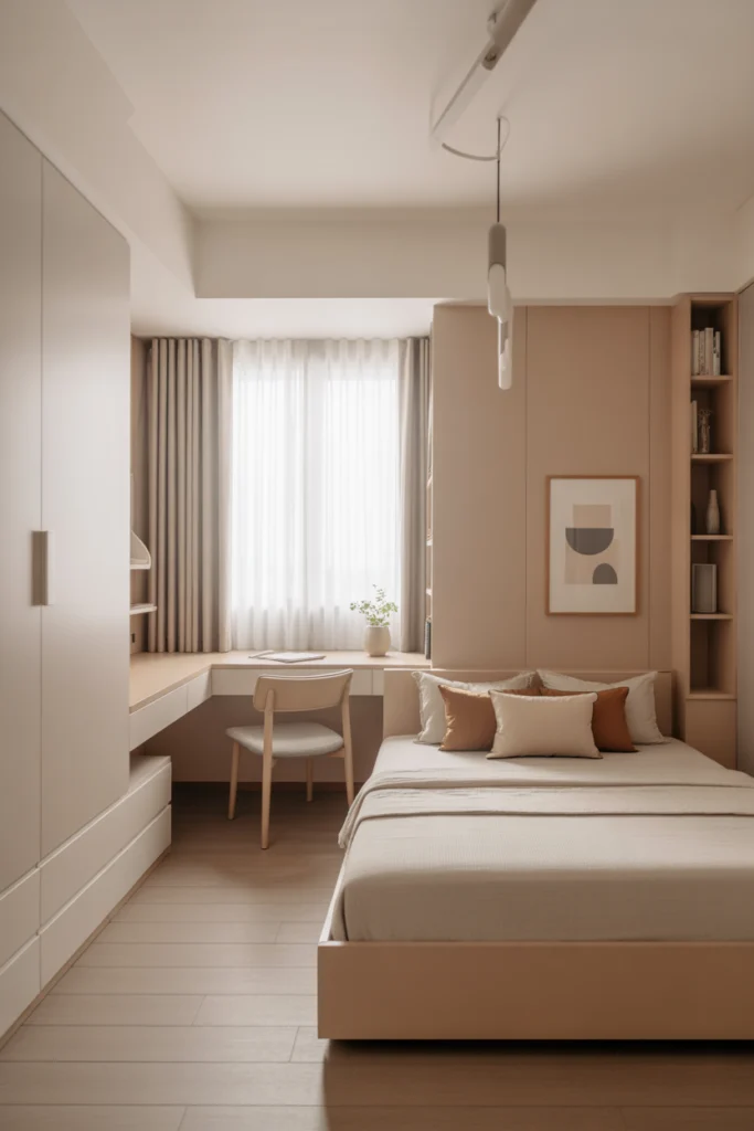 Small bedrooms can still feel stylish and functional with smart design choices. Multi-purpose furniture, vertical storage, and light colors help maximize space. This idea focuses on making the most of every square foot without sacrificing style.