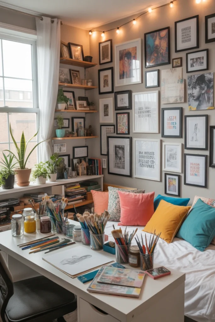 Functional elements like a dedicated art desk or storage for supplies keep the space organized. Neutral walls paired with colorful accents allow artwork to shine. This idea supports creativity while ensuring the room remains stylish and livable.