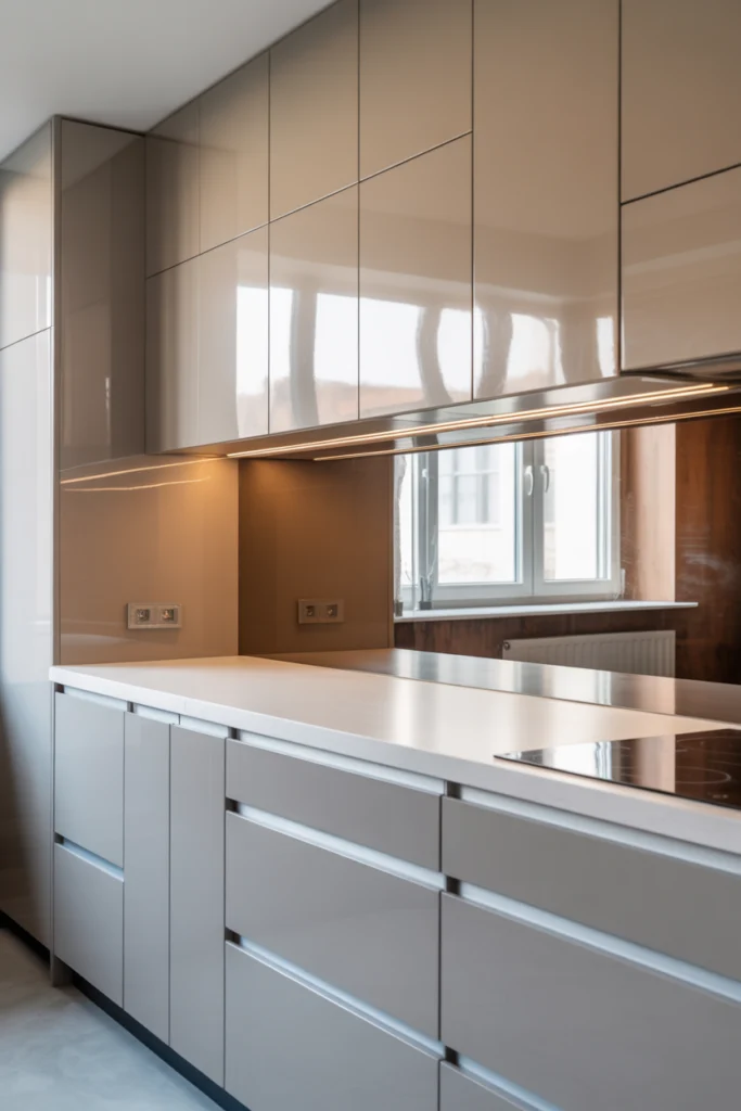 Glass-front cabinets lighten visual weight and create an airy, refined look. They reflect light and open up small kitchens visually. Whether clear, frosted, or ribbed, glass adds elegance to tight spaces while displaying neat dishware organization.