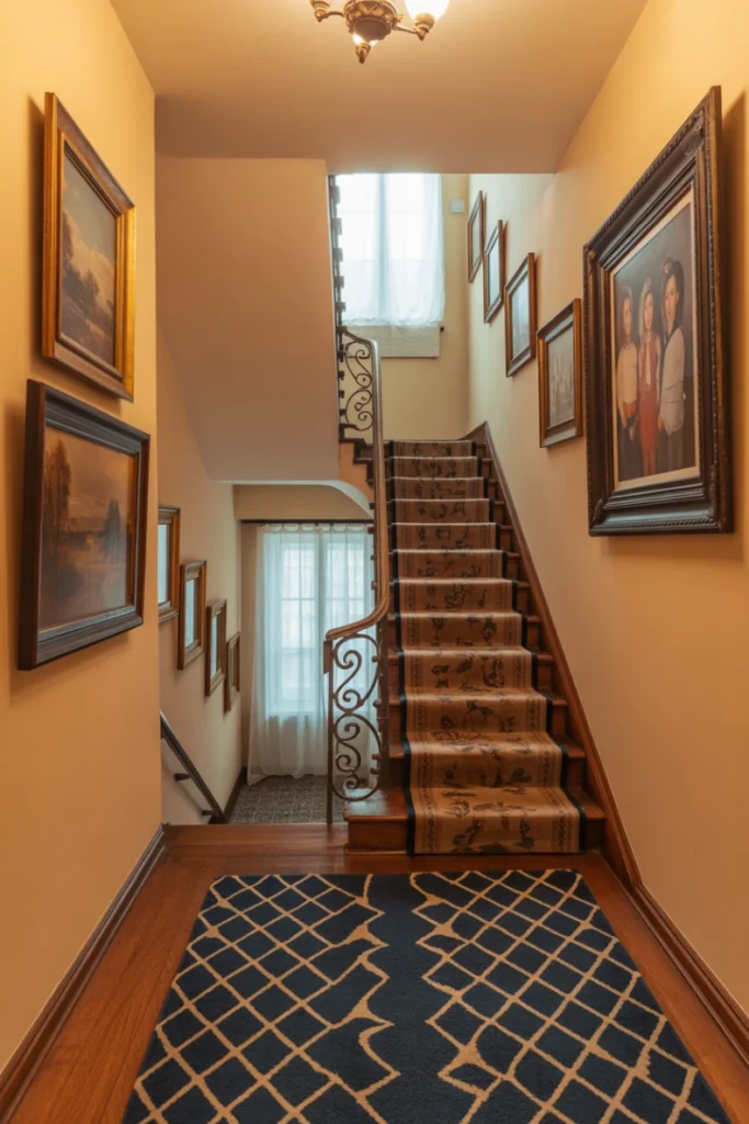 Use stylish railings, runners, or wall art along the staircase. Integration ensures the hallway flows seamlessly with the staircase design.